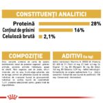 Orez, porumb, proteină deshidratată de pasăre, izolat proteic vegetal*, grăsimi animale, proteine animale hidrolizate, pulpă de sfeclă, fibre vegetale, ulei de pește, minerale, ulei de soia, Fructo-Oligo-Zaharide (FOS), ulei de Borago officinalis, extract de gălbenele (sursă de luteină), crustacee hidrolizate (sursă de glucozamină), cartilaj hidrolizat (sursă de condroitină).