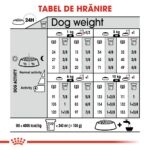 Cantitățile sunt orientative și pot fi ajustate în funcție de nivelul de activitate, vârstă și starea pielii câinelui. Asigurați permanent acces la apă proaspătă.