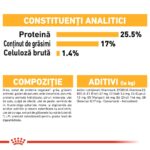 Formula este îmbogățită cu un complex precis de acizi grași Omega 3 și Omega 6, incluzând GLA, EPA și DHA, care contribuie la hrănirea și protejarea pielii, susținând funcția de barieră cutanată și menținerea unei blăni sănătoase și strălucitoare. Eficiența formulei este confirmată de studii interne Royal Canin, în care 91% dintre proprietari au observat îmbunătățiri vizibile după 2 luni de utilizare.