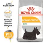 ROYAL CANIN Mini Dermacomfort este o hrană uscată completă, destinată câinilor de talie mică predispuși la iritații și sensibilități ale pielii. Formula cu potențial alergic scăzut ajută la menținerea sănătății pielii și a unei robe bogate, cu rezultate dovedite: 91% dintre proprietari mulțumiți după 2 luni