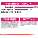 30.0% – Grăsimi: 22.0% – Cenușă: 4.8% – Celuloză brută: 2.6%.