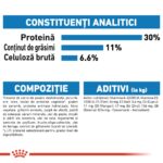 - Un conținut ridicat de proteine* (30%) contribuie la menținerea masei musculare în timp ce un conținut scăzut de grăsimi* (11%) limitează creșterea în greutate. Echilibrul optim de fibre solubile și insolubile îl ajută să se simtă sătul în timp ce acizii grași Omega 3 susțin mobilitatea articulară. Formulă completă, delicioasă și sățioasă, care ajută la păstrarea greutății optime și menținerea articulațiilor sănătoase. *Comparativ cu produsul de întreținere (Mini Adult).